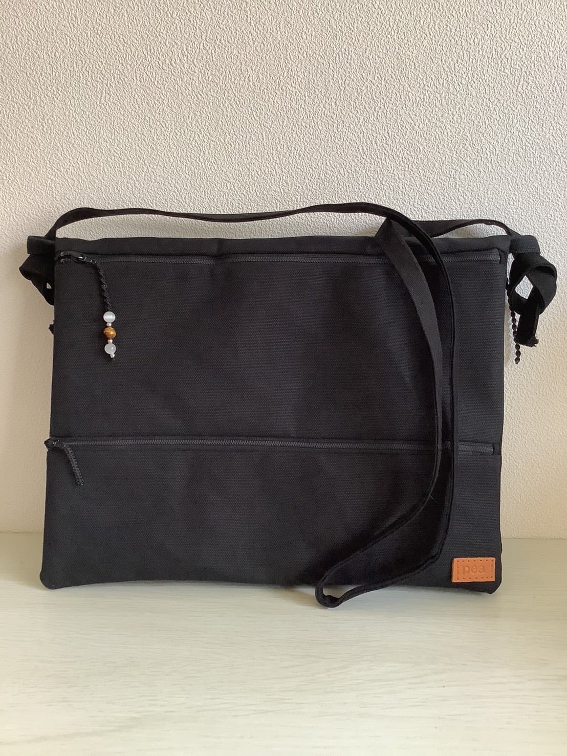 peaウォレットショルダーバッグWサイズ 色ブラック 天然石ストラップ